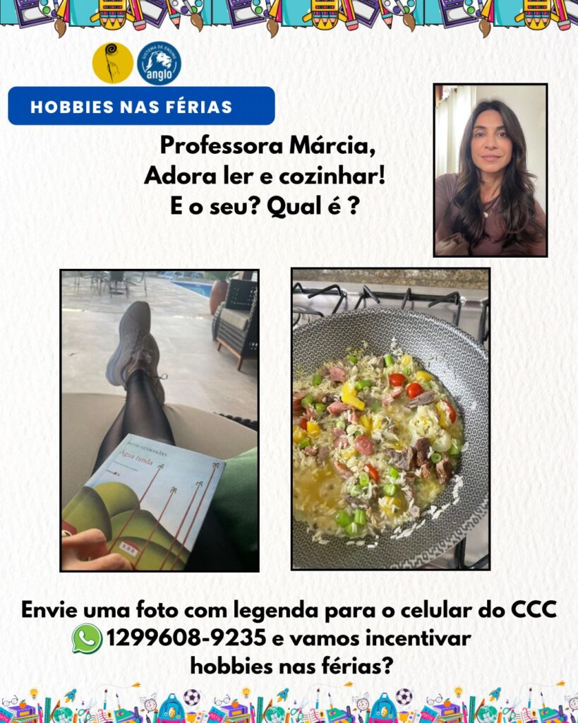Olá!!! Durante esse início de férias, propusemos, por rede social, que nossos alunos nos enviassem seus hobbies favoritos para o período de férias. Mas não somente durante esse período os hobbies ou passatempos são importantes. Vamos entender para além deste período?